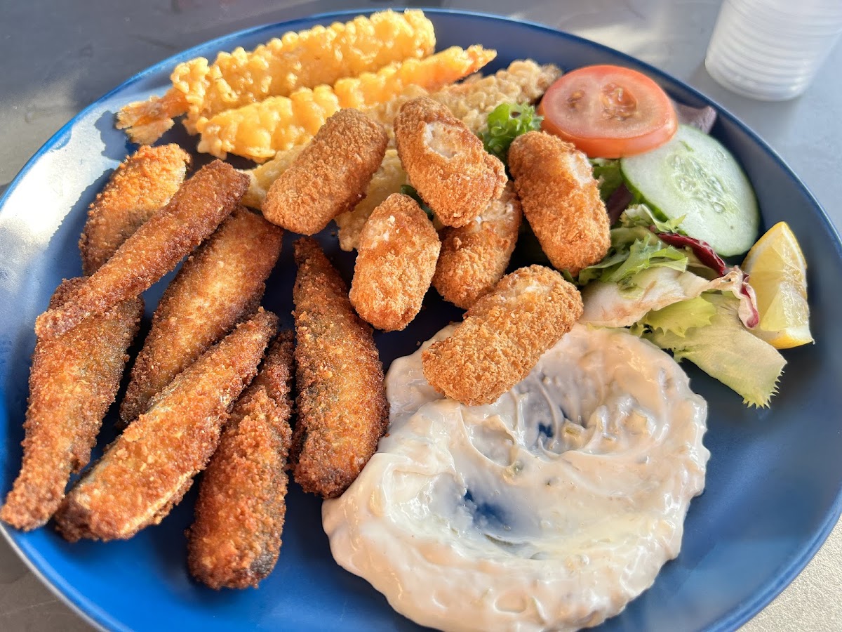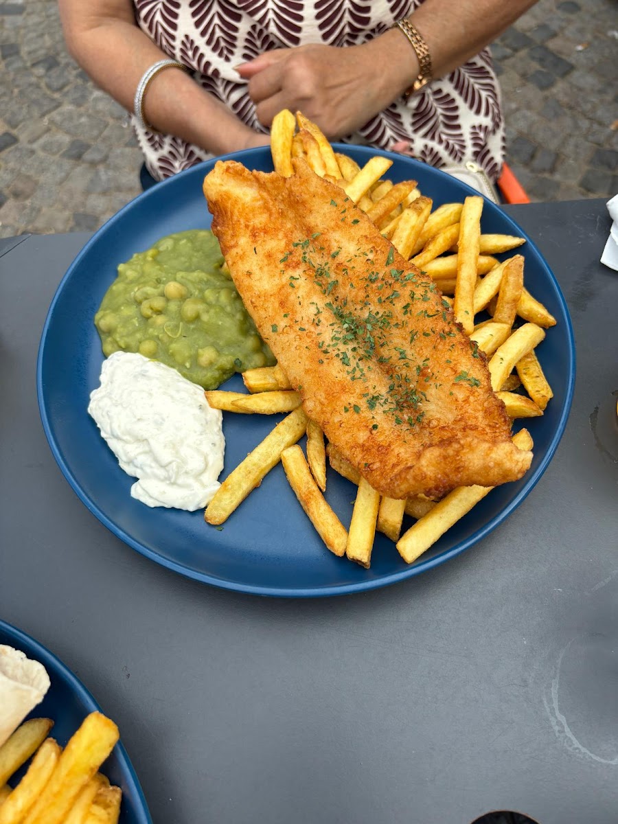 The best fish and chips I’ve had by the seaside! The fish is not oily and has a thin layer of batter, the tartar sauce is delicious as well.